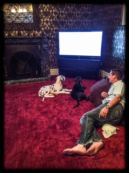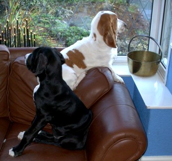 Mark, Hera & Zeus wait for the footie match to come on the tele!