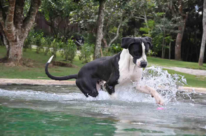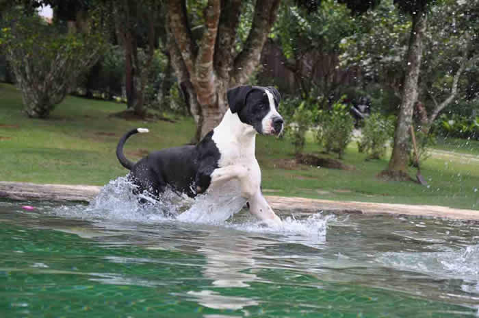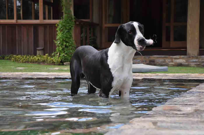 Frankie enjoying his own personal swimming pool in the Brazilian sunshine of Rio de Janeiro before being trained to stand for the showring, ready for being campaigned on the Brazilian/American show circuit.