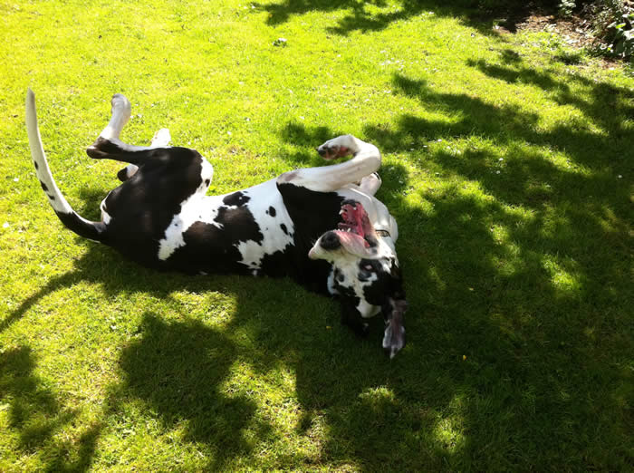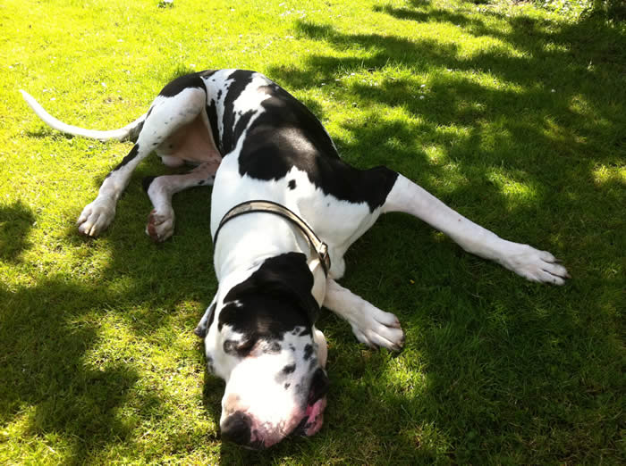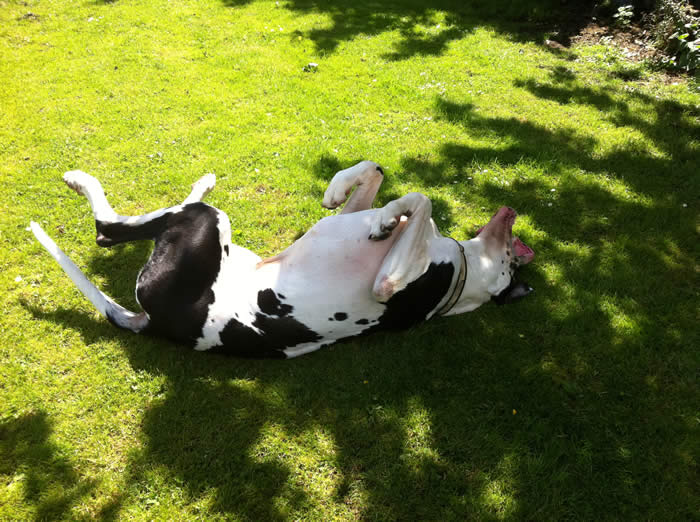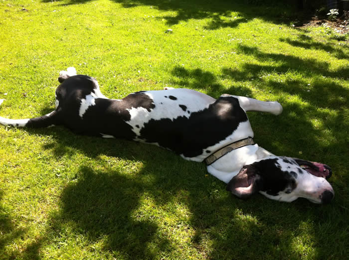 After a game of football, Dave waits patiently for his well earned dinner! Will just have to wait here until my chauffer arrives.....