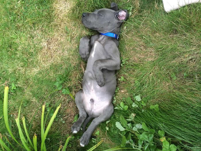 Life is so hard at 8 weeks old! Picture of Jasper one of our blue puppies sent in by Catherine & Mark