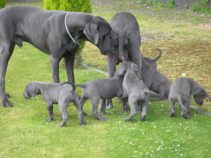 Pictures of mum & dad with their puppies from one of our previous blue litters