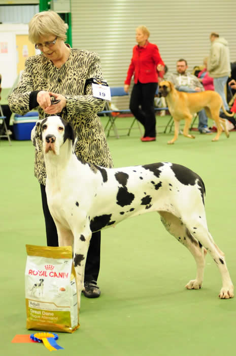 Nina seen here winning 1st Place in Novice Bitch at Dane of the Year Show in Coventry on 21st October 2012.