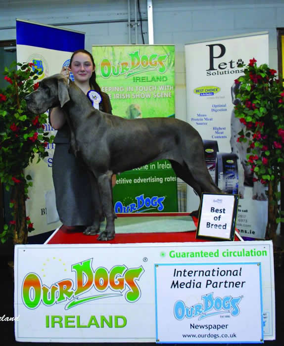 Yearling Bitch - 1st Place Best Opposite Sex Bitch CC The Irish Great Dane Club Championship Show Sunday 6th July 2014 Intermediate Bitch - 1st Place Best Blue Bitch Green Star Bitch **BEST OF BREED**