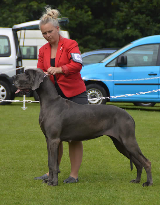 Scottish Great Dane Championship Show Saturday 12th April 2014 Junior Bitch - 1st Place Special Open Blue - 1st Place Open Bitch - 2nd place * *receiving her stud book number - qualifying her for Crufts for life!