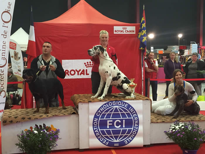 3rd Place Crufts 2015 Res CC & Best Puppy in Show - Pennine Great Dane Club 2014 Premier League Finalist 2014 Superleague Colour - Top Mantle Bitch 2014 Top Mantle Bitch 2014 - MWGDC Top Mantle Bitch 2015 - MWGDC Plus numerous first places at Championship Shows