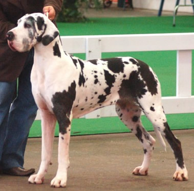 Inki has many notable wins to her name including:- Won Best Puppy in Breed - Crufts 2007 Best in Show - Great Dane Club Open Show 2008 Best Bitch - Great Dane Club Limit Show 2008 Reserve Best Bitch in Colour - MWGDC Colour Format Show 2008 and 2009 Reserve Best Bitch - East of England Great Dane Club 2009 Runner up Harlequin Bitch - SWGDC League points 2009 Superleague Finalist 2009 Reserve CC - Southern Counties Ch Show 2009 Reserve CC - City of Birmingham Ch Show 2009 Crufts 2011 - 2nd Open Bitch Best Veteran In Show - Scottish Great Dane Club Ch. Show 2012 Best Veteran Bitch - Great Dane Breeders and Owners Club Ch. Show 2012